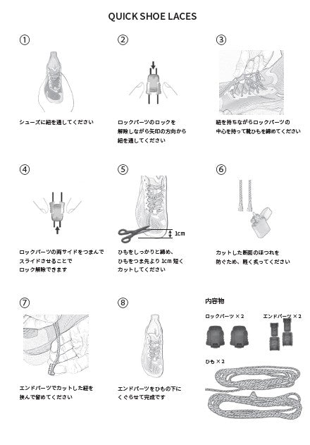 ①シューズに紐を通す。