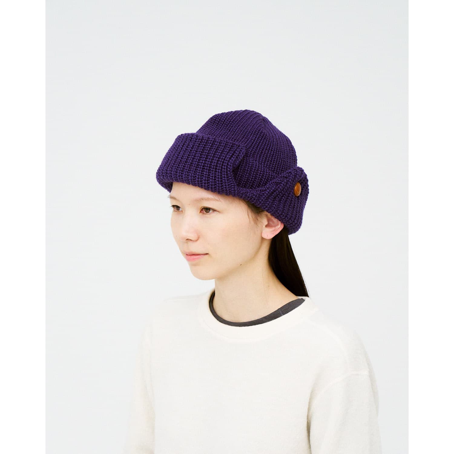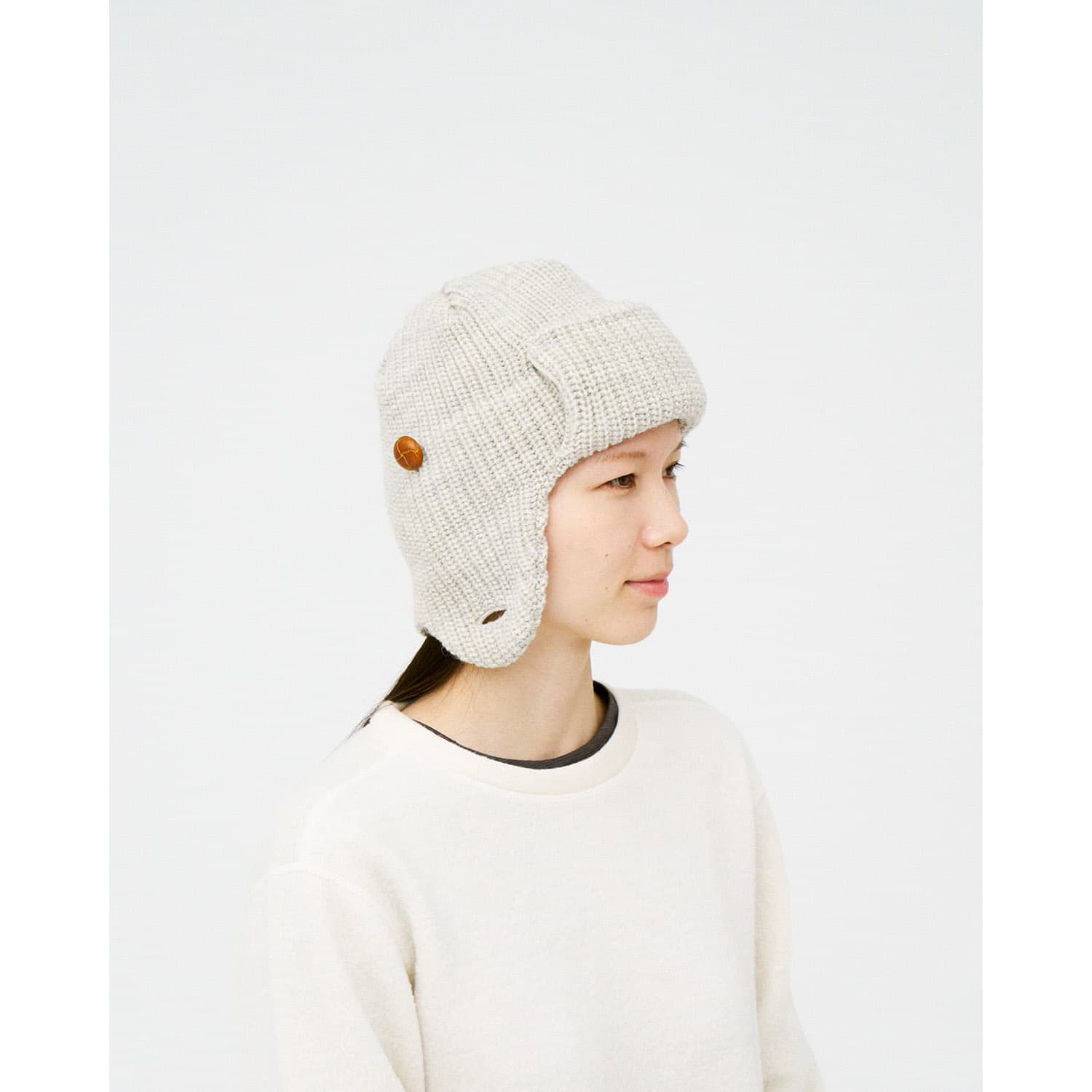 軽くてやわらかなウール糸を使用し、ふんわりとした風合いに仕上げたニット帽。