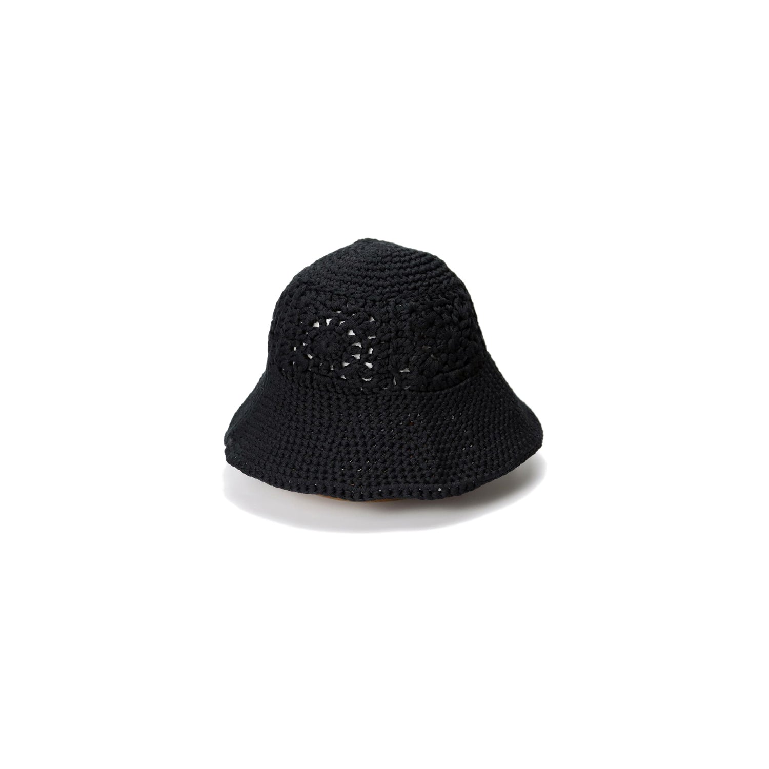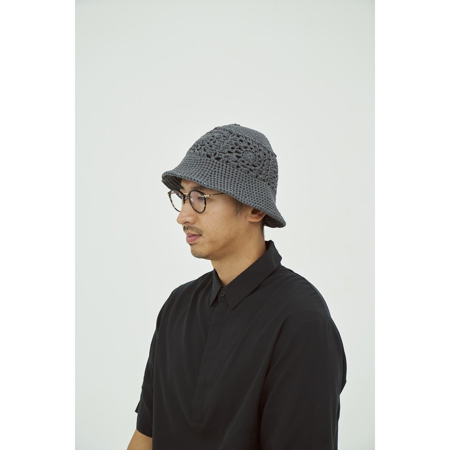 ドライなタッチ感が心地よい手編みのニットハット。トップは丸みを持たせて編み込むことで、自然なフィット感を持たせています。花柄をさりげなく編み込んだデザインがポイントになっています。