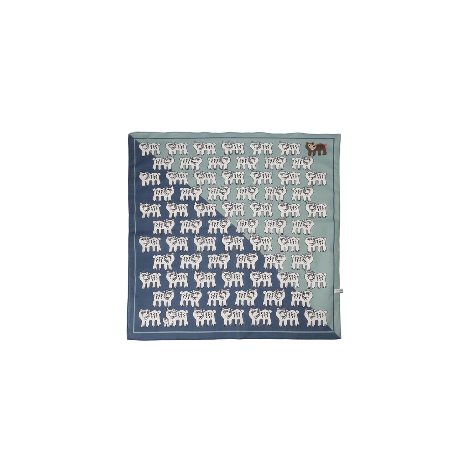 斜めに配色を切り替えたデザインが特徴のバンダナ。折り方やたたみ方によって、見せるカラーを変えられるのが魅力。首に巻いたり、バッグに掛けたり、ハンカチとして使ったりと、シーンに合わせたアレンジが楽しめます。