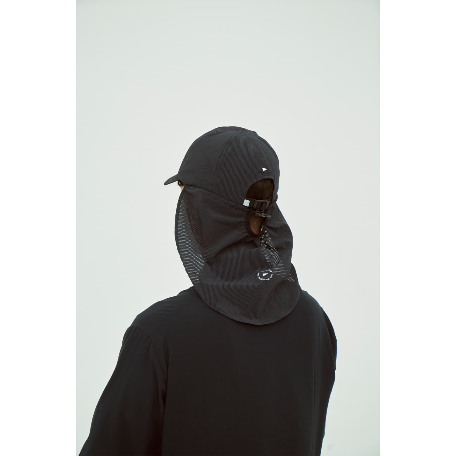 UV カット性の優れた生地を使用したサンシェード。左右のプラスチックパーツで帽子に取り付けられます。