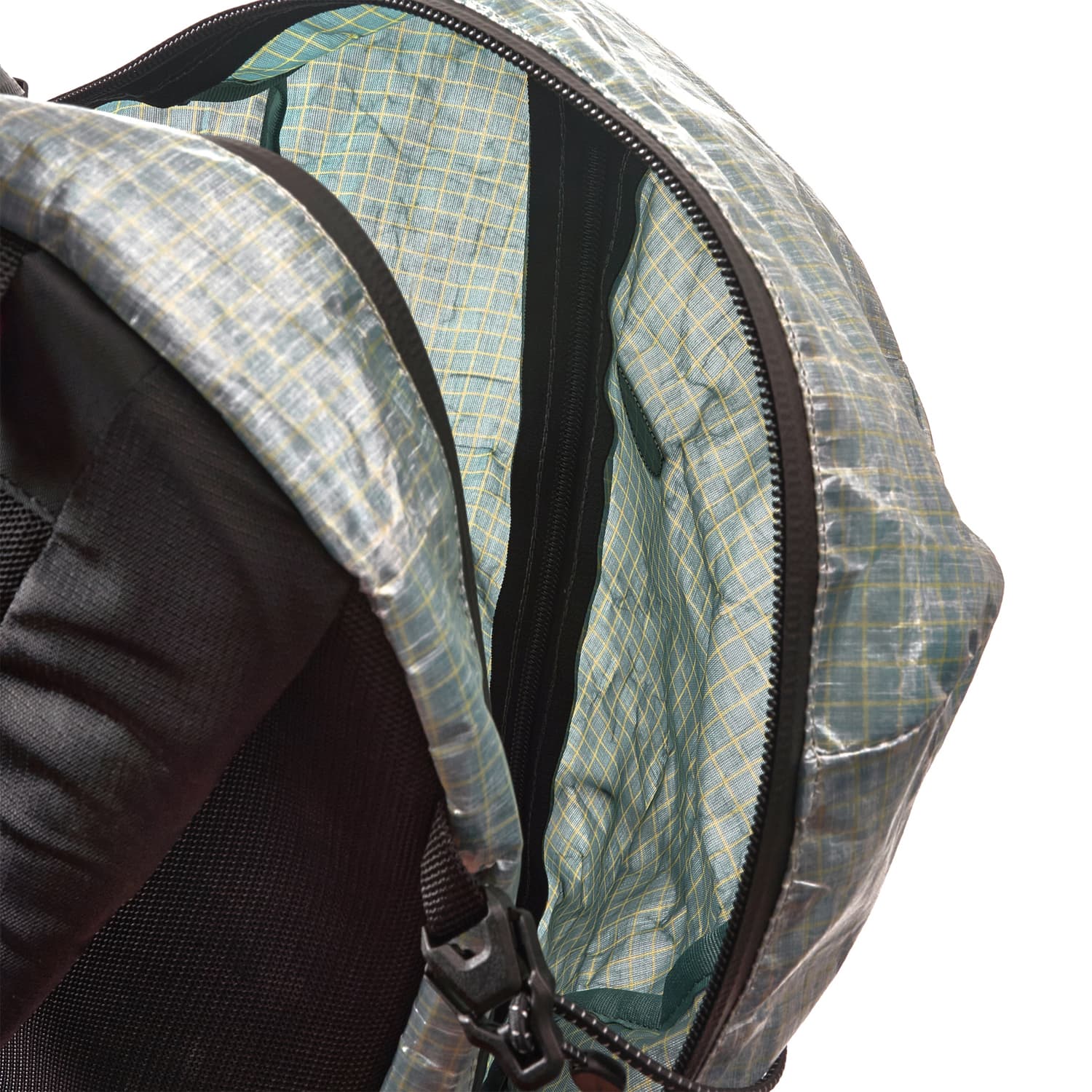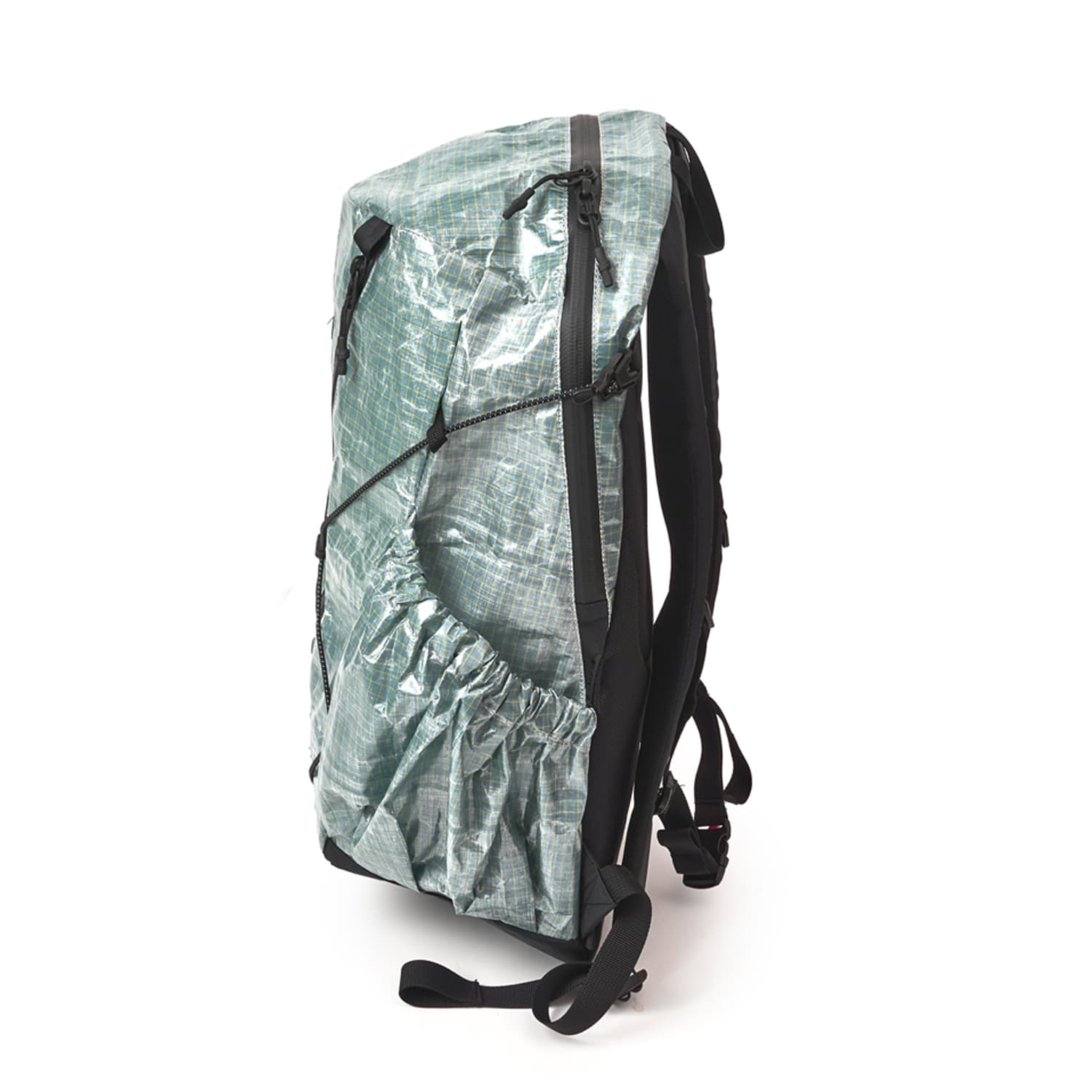 超軽量で高い防水性と引裂強度で知られている、Dyneema®繊維をラミネートしたフィルム状ファブリック。