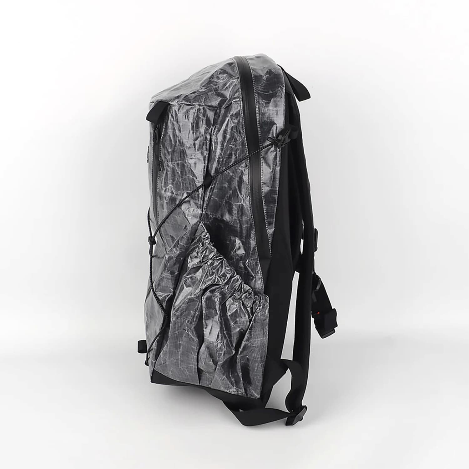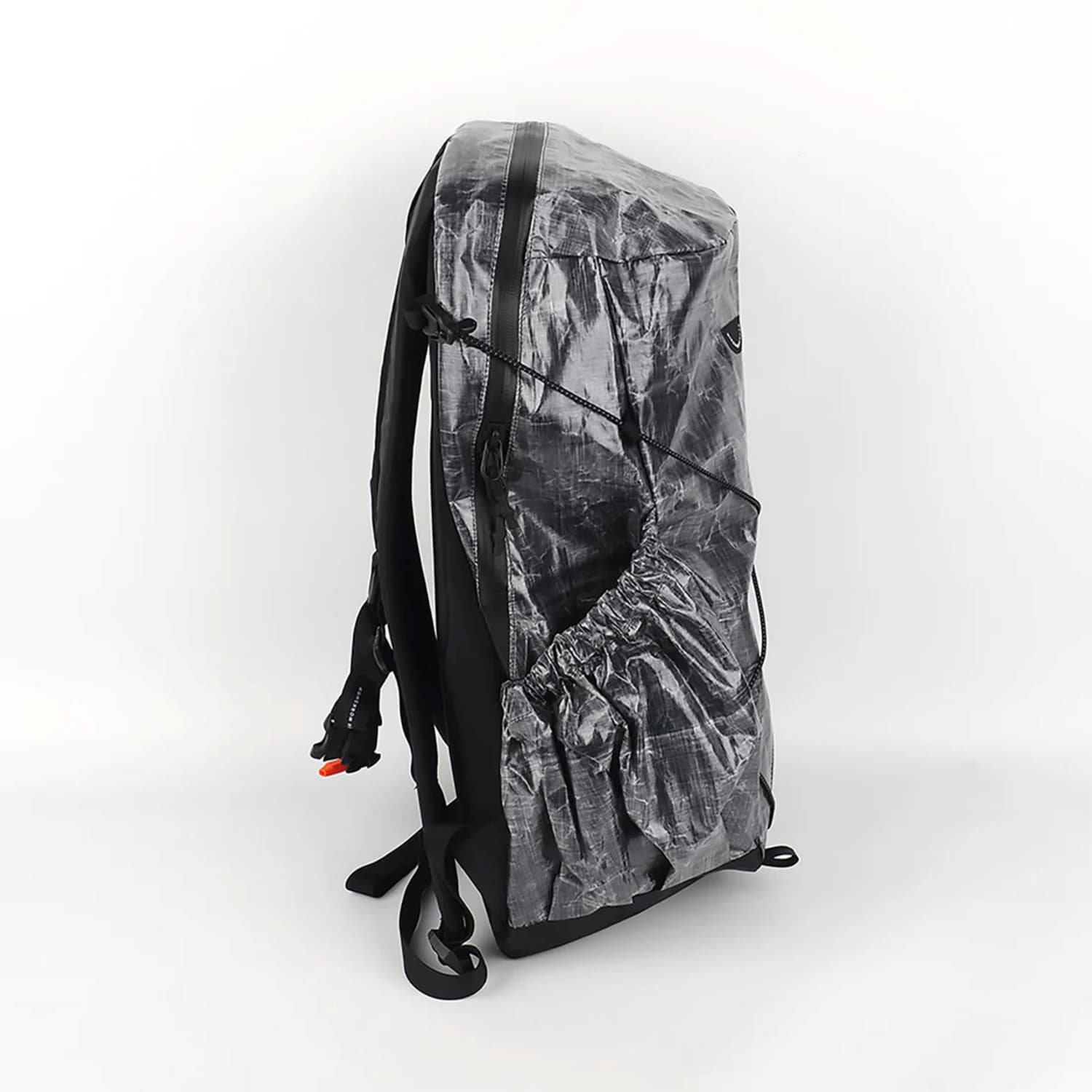 超軽量で高い防水性と引裂強度で知られている、Dyneema®繊維をラミネートしたフィルム状ファブリック。